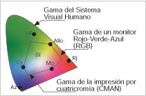 Realmente, es imposible encontrar tres primarios reales tales que puedan dar origen a todos los colores y por eso en un sistema real de reproducción de colores por medio de la mezcla aditiva, como es la televisión, sólo puede mostrarse una gama limitada de colores.